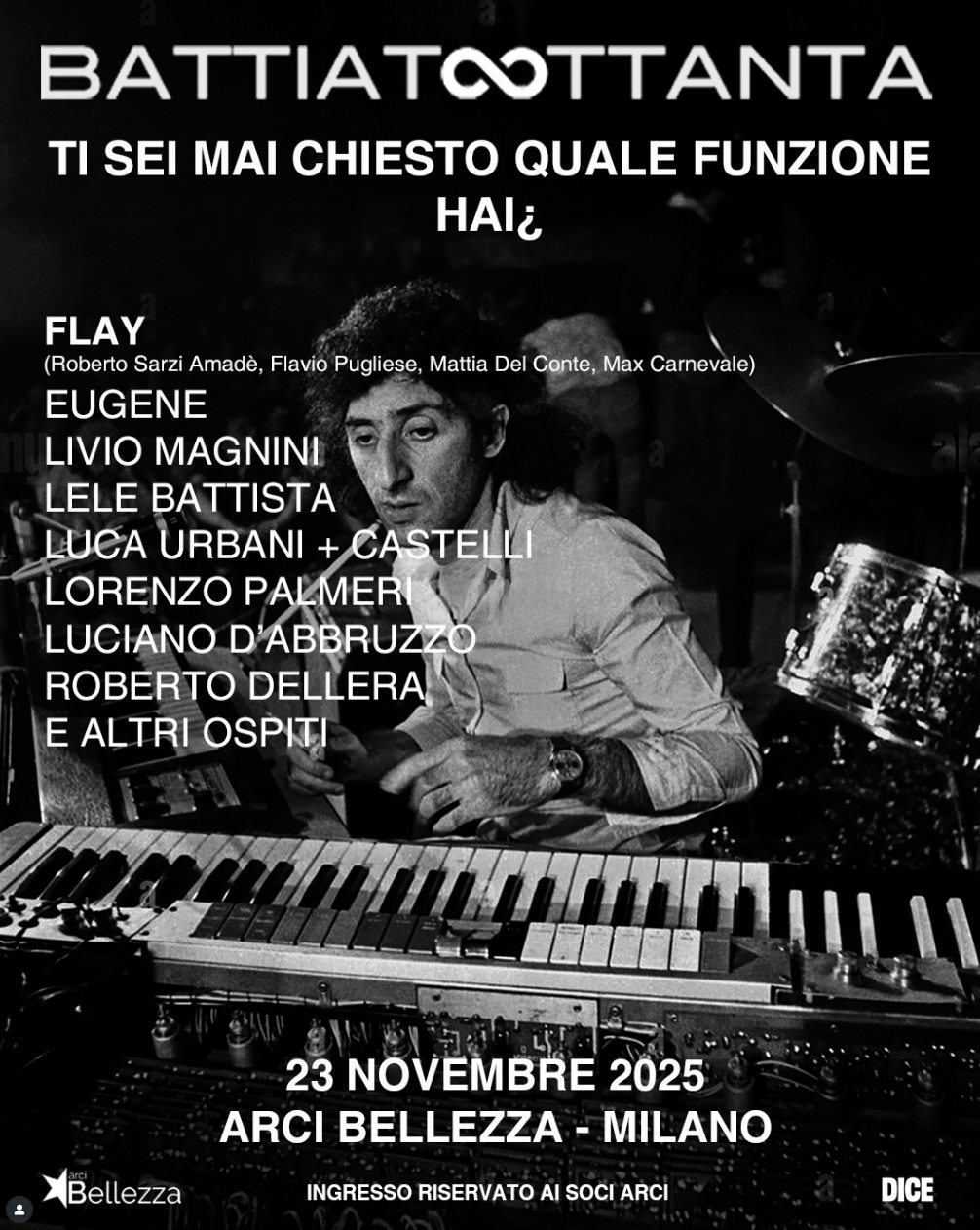 Sul palco Flay, indie band che gioca con i confini tra melodia e sperimentazione: il loro suono sembra nato per dialogare con l’universo di Battiato. Insieme a loro una lunga serie di artisti: